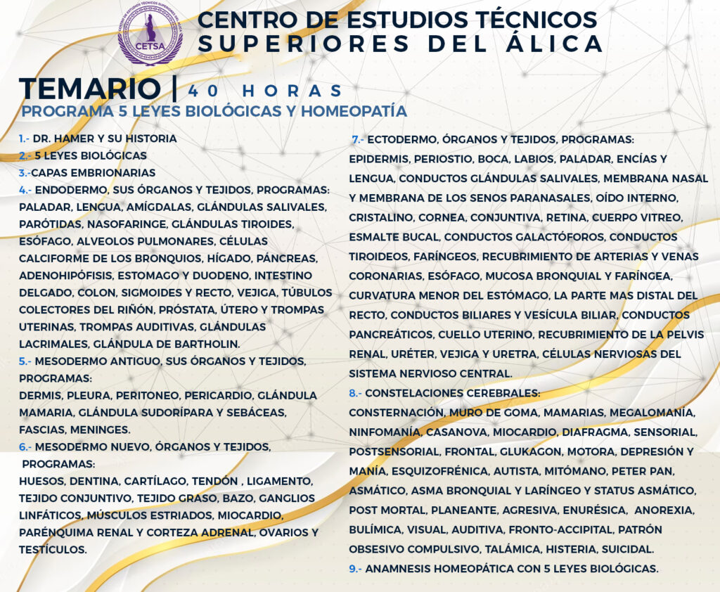 Curso Intensivo de las 5 Leyes Biológicas y su Aplicación en la Homeopatía
